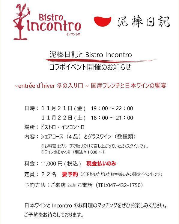 泥棒日記とBistro Incontro コラボイベント開催のお知らせ