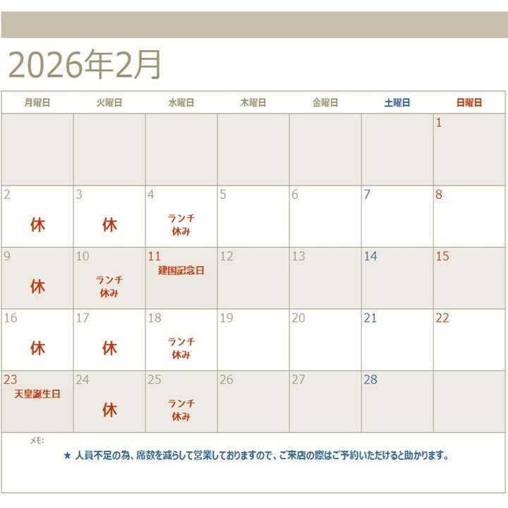 【2月の定休日】
